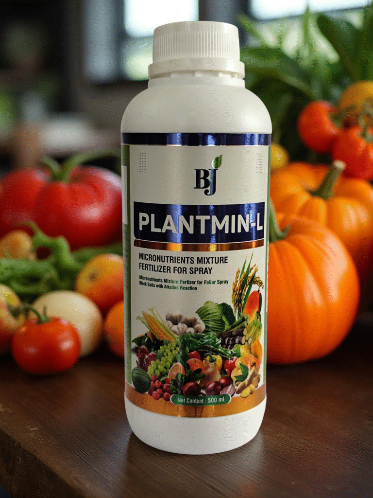Plantmin – L is a liquid micronutrient product for spray purposes. This – product contains six essential micronutrients i.e., Iron, Manganese, Zinc, Copper, Boron and Molybdenum in balanced proportion. Zinc, Manganese and Iron are given importance while formulating this product technology. This product can be used during all stages of crop growth.